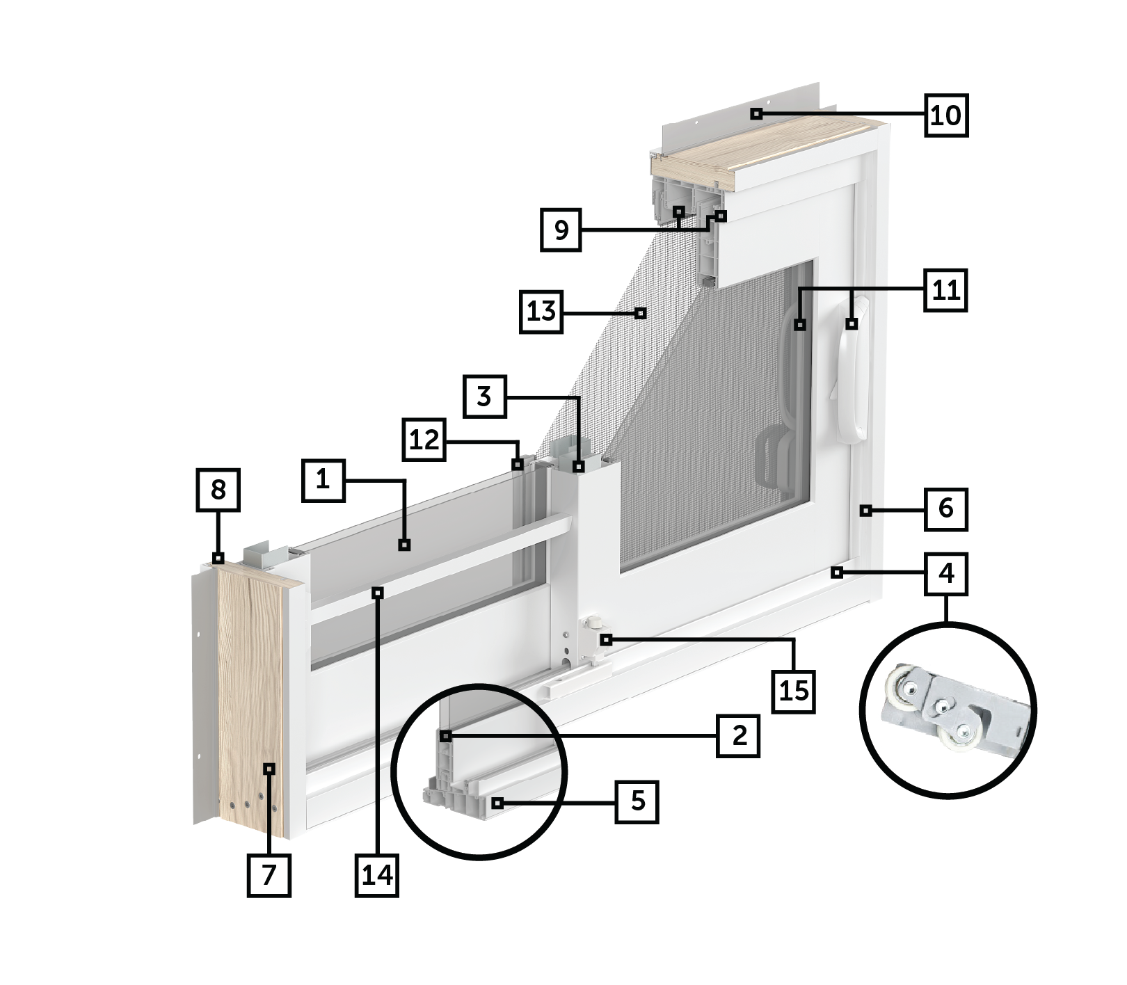 with seamless PVC exterior cladding - Air-tight high-fin weatherstripping and top track cap