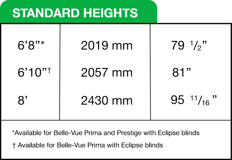 8 1⁄4”, 9 1⁄4” & 9 3⁄4” - Interior frame extensions (max. 13 3⁄4”)